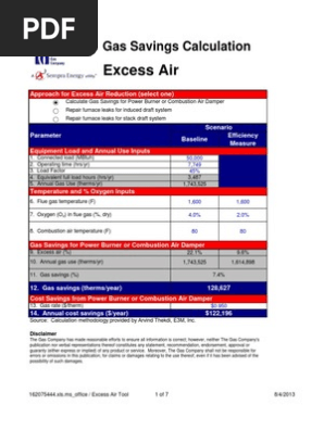 Excess Air Gas Savings Calculation Pdf Chimney Combustion